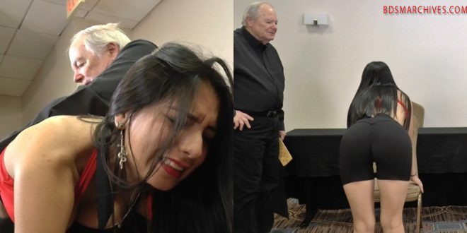 Sassy Alana Noex is already sore from four previous spankings, and now she gets the seat of her thin spandex shorts warmed over Principal Tubaman’s knee before being sent to …