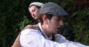 Then Marie is told to lie down on the floor. Her wrists are tied tightly with rope and her ankles are also tied with rope. Her legs are raised high so that are feet are in a good position for bastinado. Her feet are struck 24 times with the slender cane, Miss Belle strikes one foot at a time.