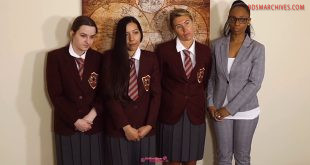The girls have been naughty again… and this time even with their teacher… carousing about town, and even inviting boys back home with them. Only a hard punishment will do! …