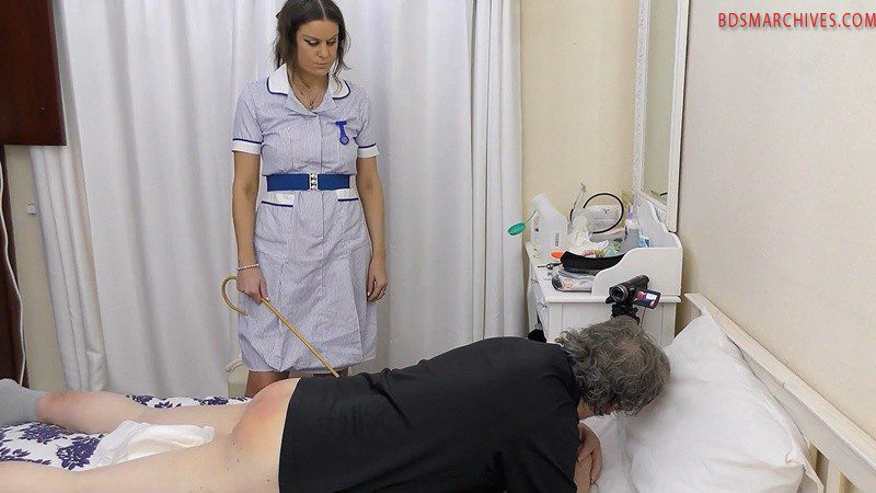 If he got off lightly last time, all that was about to change. The day starts with him getting 12 strokes from me in my nurses uniform, six lying face down and six in diaper position, and then he had an unexpecetd visitor. WPC Cleo has come with a warrant for failing to attend his agreed monthly punishment session. After he got 12 strokes from WPC Cleo, he later had another visitor (me as headmistress Chloe). I gave him another 24 strokes and told him I was sending him to the nurse to be examined. As Nurse Chloe I gave him another 14 strokes in the diaper position, 8 with the crop and 6 with the cane, making a grand total of 62 strokes for that day.