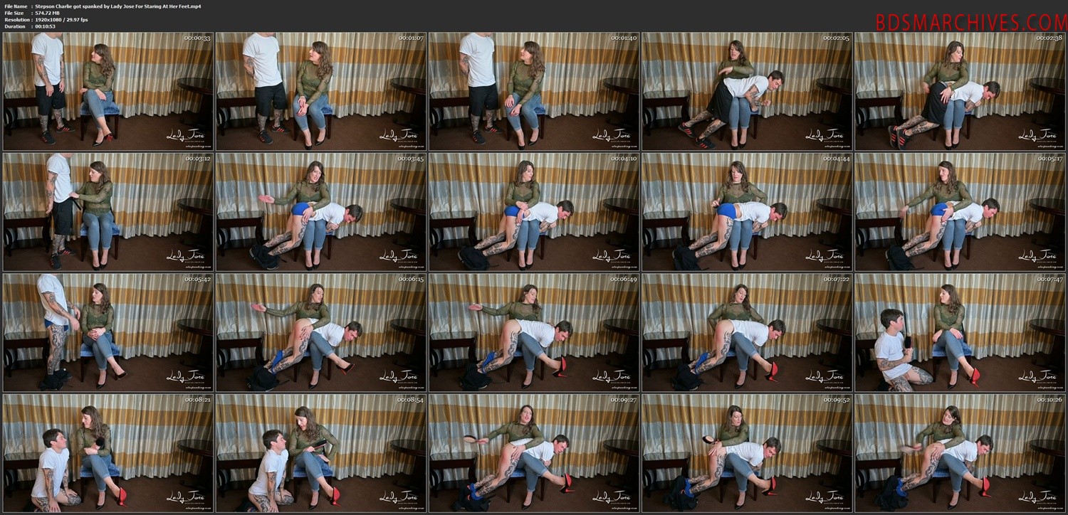 Stepson Charlie got spanked by Lady Jose For Staring At Her Feet – Lady Jose Spanking and Kinks Studio