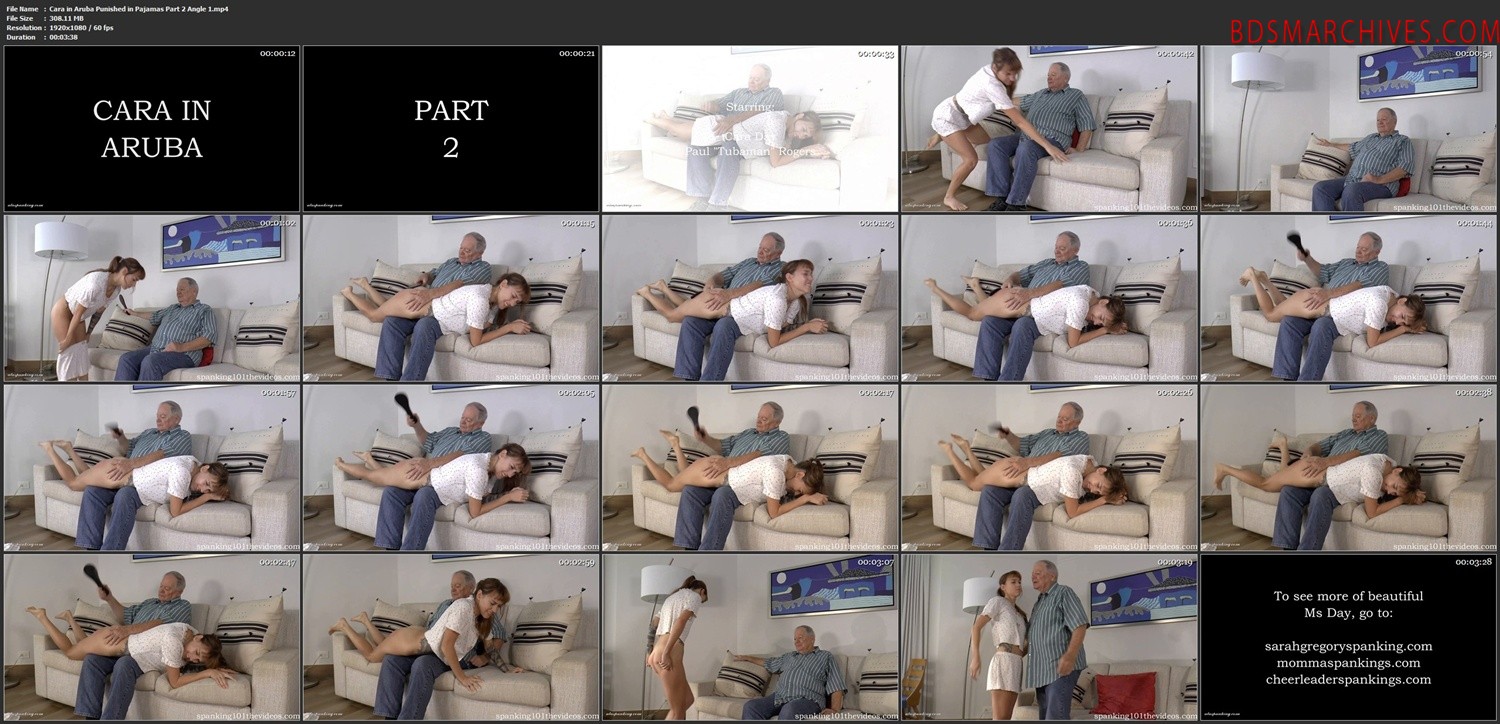 Her bottom already tender from a sound spanking on her thin pajamas shorts, she must now fetch the stingy leather paddle for a second spanking on her sore bare bottom.