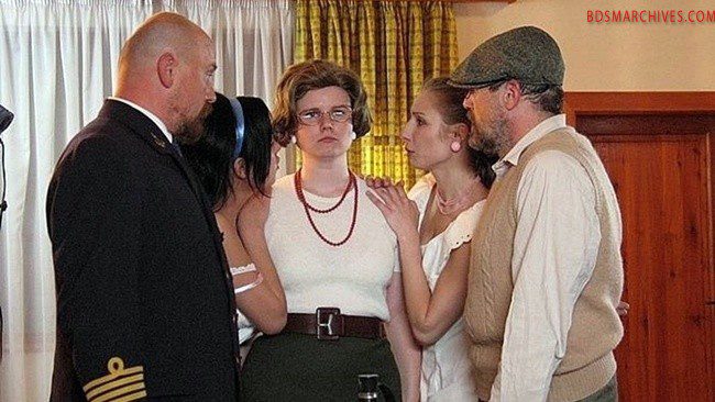 And here comes the scene you’ve never seen before. In the office of the honorable navy officer we witness the hardest paddling that has ever been filmed. Fifty strokes with a heavy wooden paddle swung with all the strength of the master’s muscular arm. She has no other choice than to confess who changed the lock on her chastity belt. And here we go – it was her best friend, Dana. “Dana, Dana, Dana!” she cries between the final blows as the horrible tool ravages her dark purple, swollen buttocks.