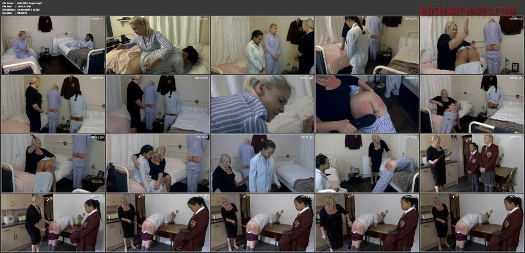 Girls Who Argue 1: There is drama in the dormitory and as always it ends with a sore bottom. Today Charlotte is fed up with Beatrice, taking her over the knee for a sharp hand spanking. Miss Sullivan is drawn by all the noise, and lays into haughty little Charlotte with a furious scolding. As Beatrice watches in fear, Miss Sullivan takes Charlotte over her knee, for a harsh lesson on just how much a spanking can hurt.