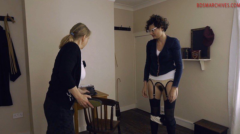 Miss Jones still hasn’t learned her lesson, slacking off on the job by indulging herself in a trashy romance novel. Off comes her skirt, and I bend her over her own desk for yet another punishment, this time with a stiff plimsoll slipper. As the hard rubber sole meets her sorely spanked bottom, poor Patricia whimpers in pain, but she still makes excuses for her lazy behaviour. I have no choice but to pull her back over my knee, where her punishment only gets worse, as I paddle her with my shoe until her naughty bottom is covered with hot red bruises.