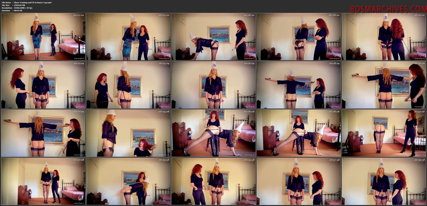 Strict Miss Page is training me under the chairman’s watchful eye, viewing via video link. Miss Page’s standards are extremely high, and whenever she’s displeased with my performance, she makes me remove an item of clothing, so that I’m soon exposed in garter belt, stockings, high heels and a blouse, with nothing covering my bottom half! More obedience training ensues, followed by a hard OTK spanking and harder caning when I don’t please her sufficiently. Miss Page is a very tough trainer indeed, but the chairman’s standards are sky-high.