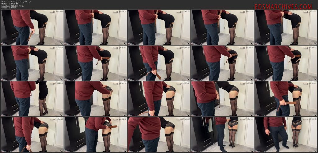 Attending a black tie event with her husband, Kinia and some of the other young wives decide to liven up the evening with a few shots at the bar. Whilst some thought it was funny and refreshing to see the younger ones having some fun, Kinia’s husband was not amused. On returning home she had to present her bottom for the strap, whilst still wearing her little black dress.