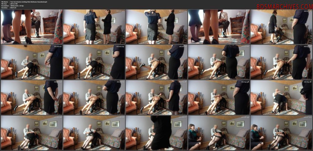 Two Secretaries Getting their Bottoms Smacked. Roleplay driven clip with spanking and scolding with fun retro feel all around.